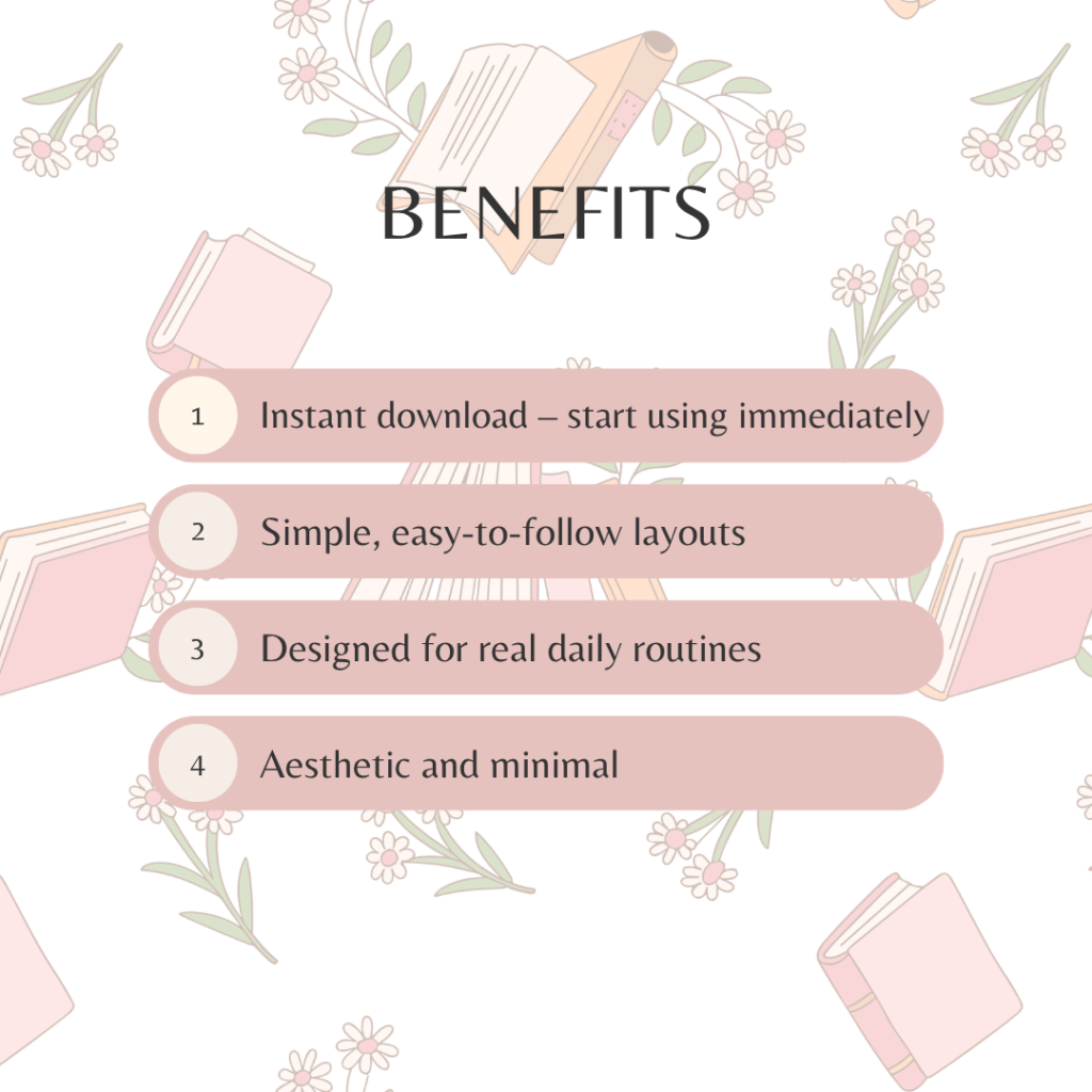 Meal planners, cleaning checklists, and self-care tools — instant download, no shipping required.